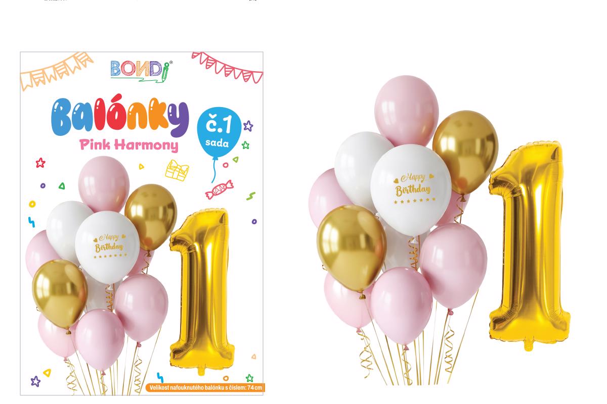 Balónková sada Happy Birthday č.1 Pink Harmony (12sad/bal, 360/krt)