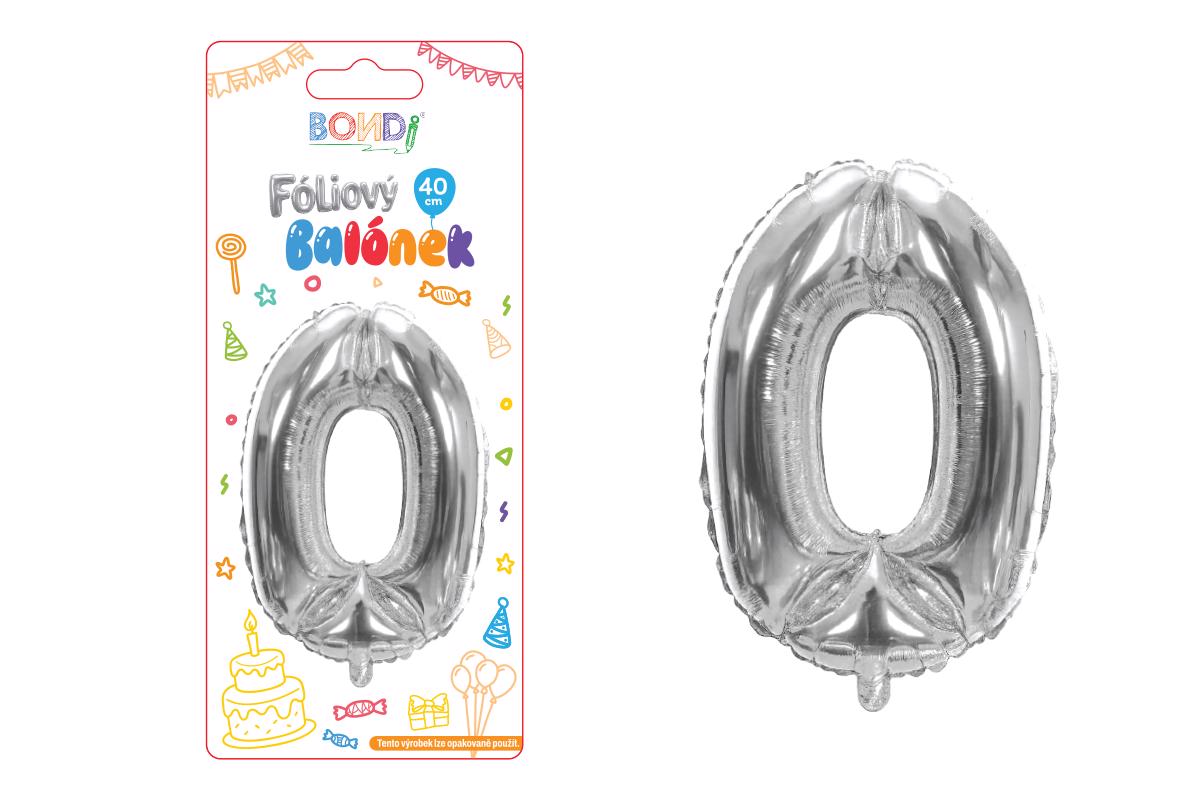 Fóliový balónek 40cm č.0 stříbrný (12ks/bal, 600/krt)