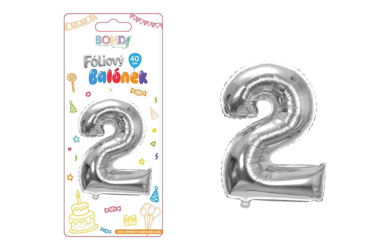 Fóliový balónek 40cm č.2 stříbrný (12ks/bal, 600/krt)