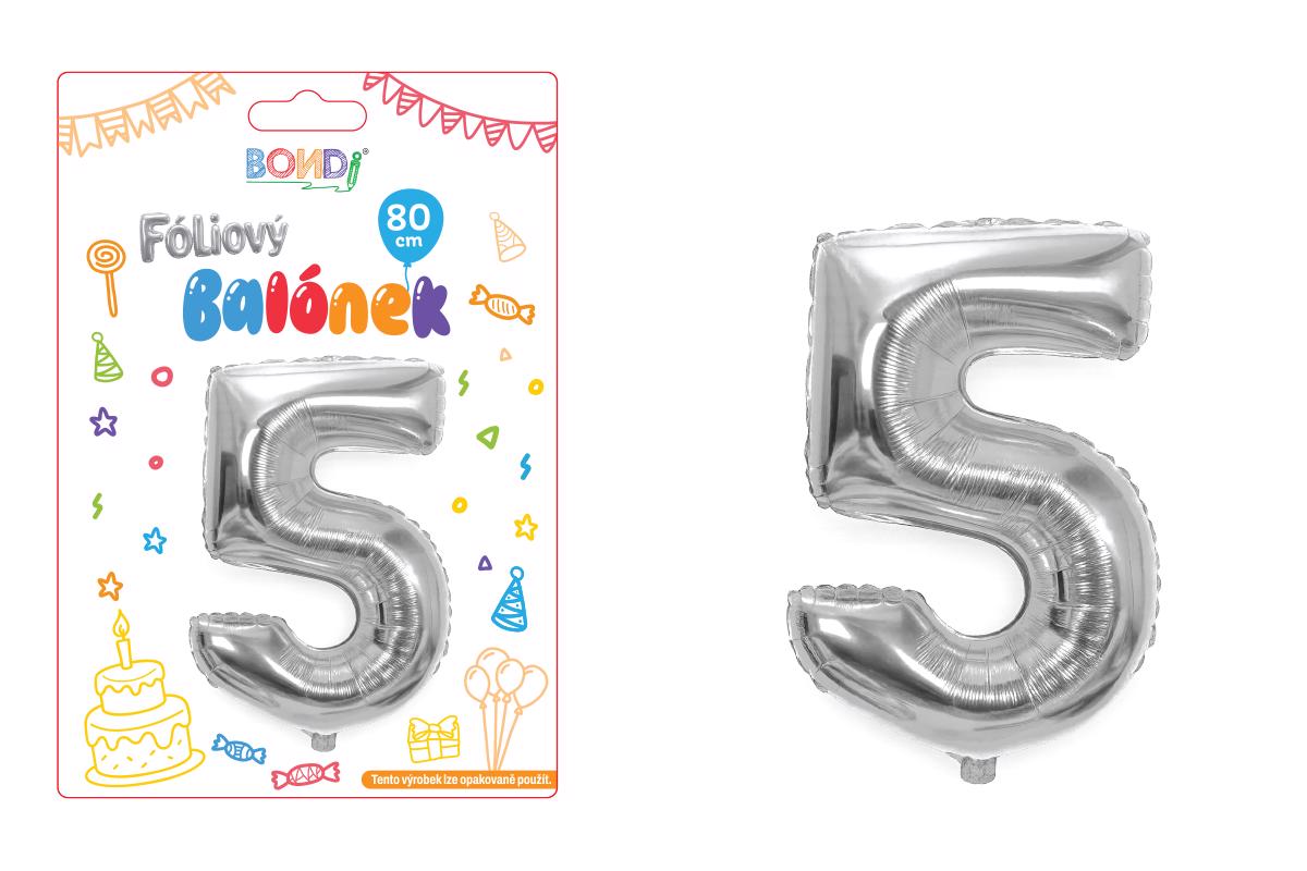 Fóliový balónek 80cm č.5 stříbrný (12ks/bal, 600/krt)