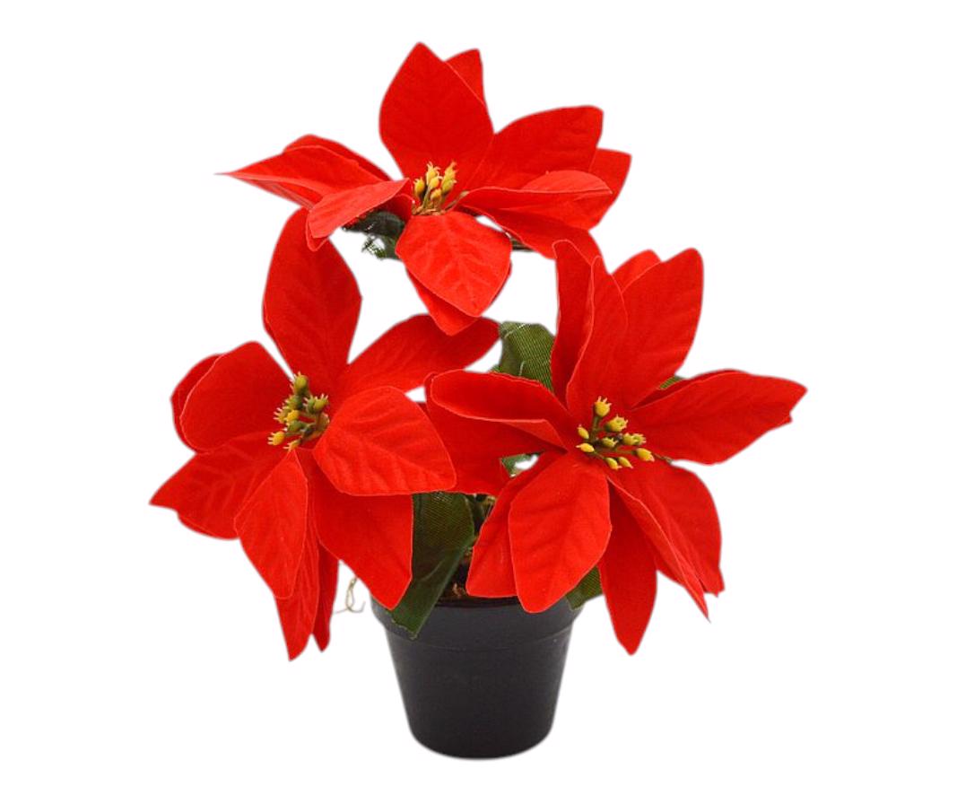 Vánoční hvězda v květníku 3 květy 17cm