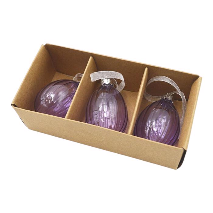 Vejce sklo ozdoba 3ks v boxu fialová