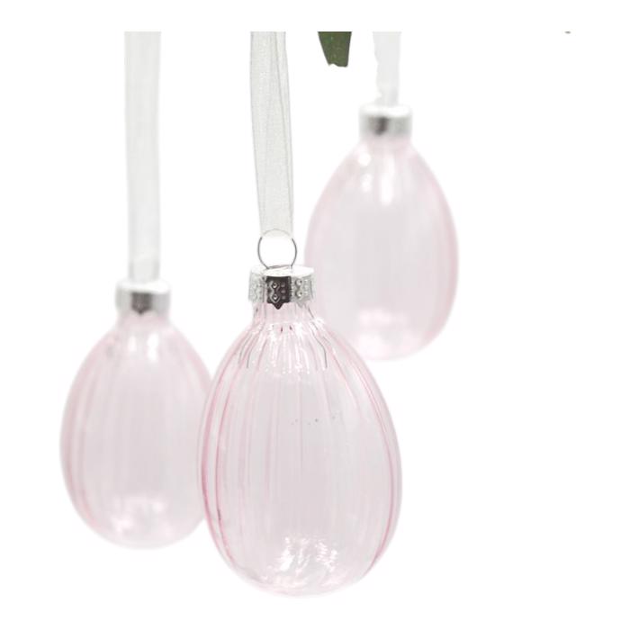 Vejce sklo ozdoba 3ks v boxu růžová