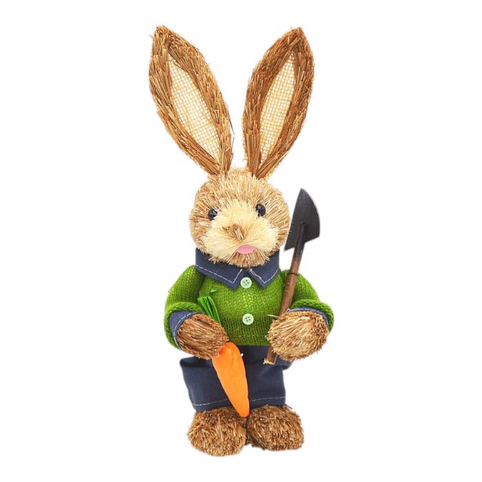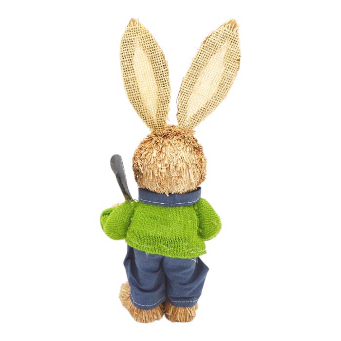 Zajíc trávový zelený svetr+šedé kalhoty