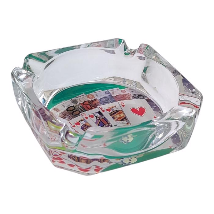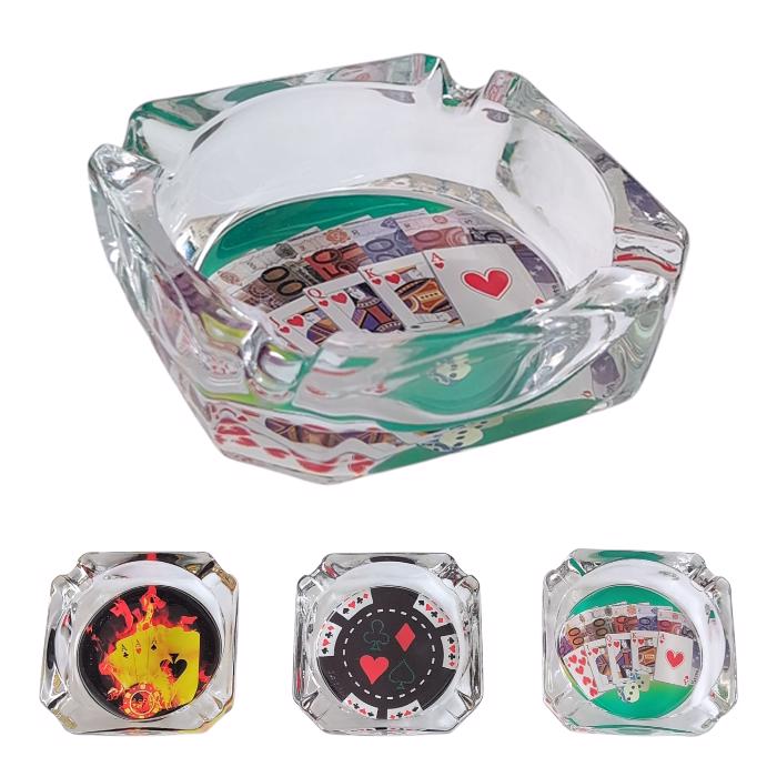 Popelník skleněný čtvercový 9x9cm - Kasino (6ks/bal)