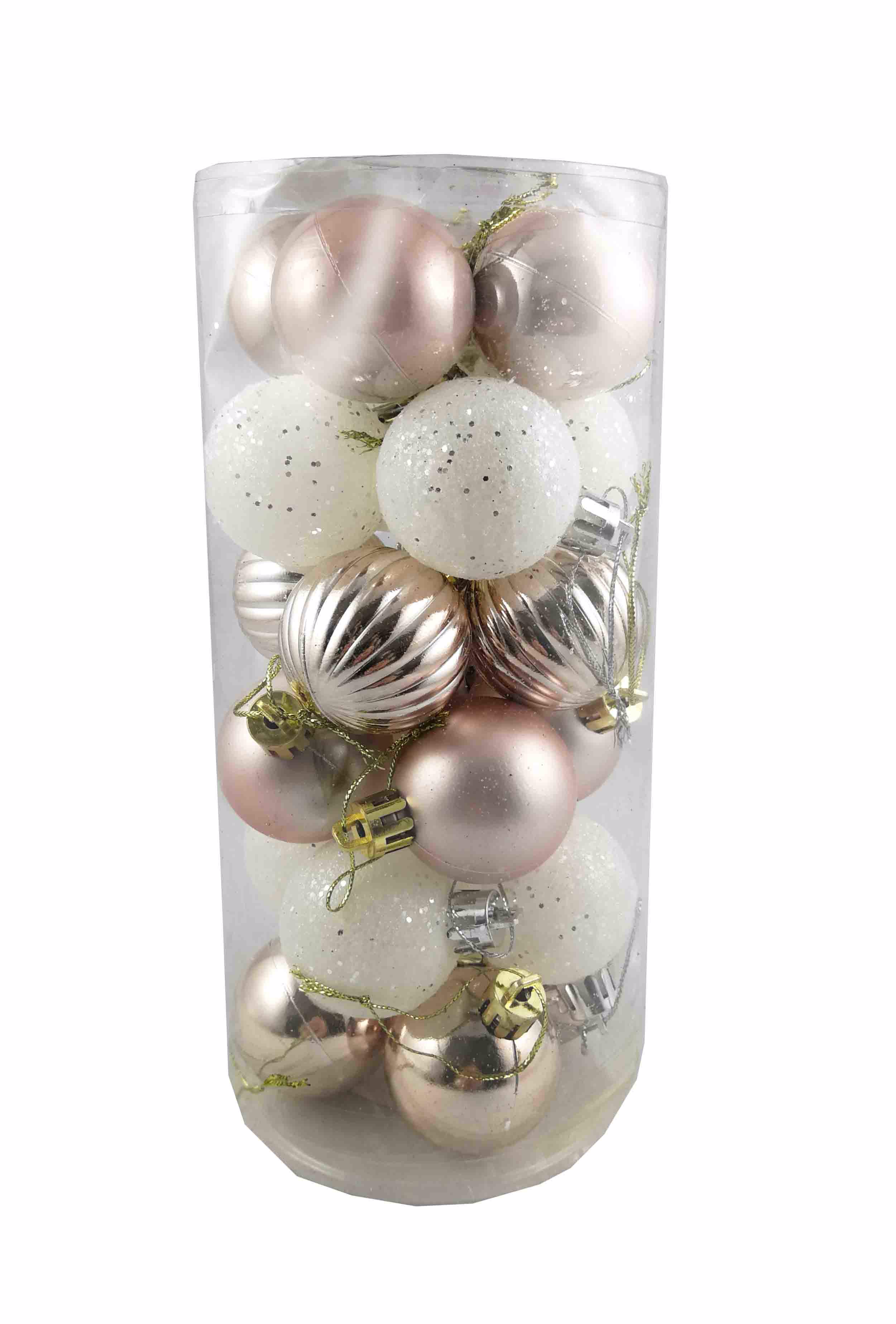 Vánoční dekorace - koule 4cm champagne+bílý -24ks (72sad/krt)