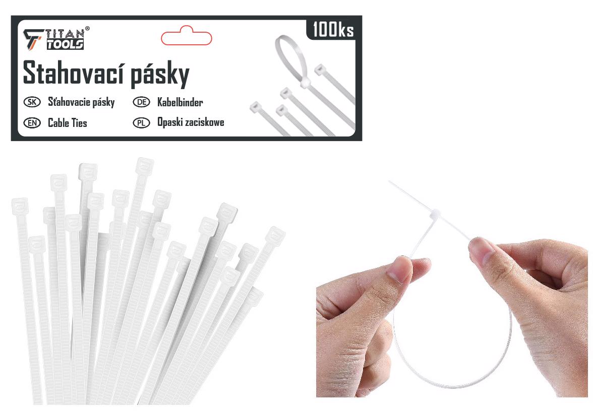 Stahovací pásky bílé 7x300mm 100ks (12sad/bal,96/krt)
